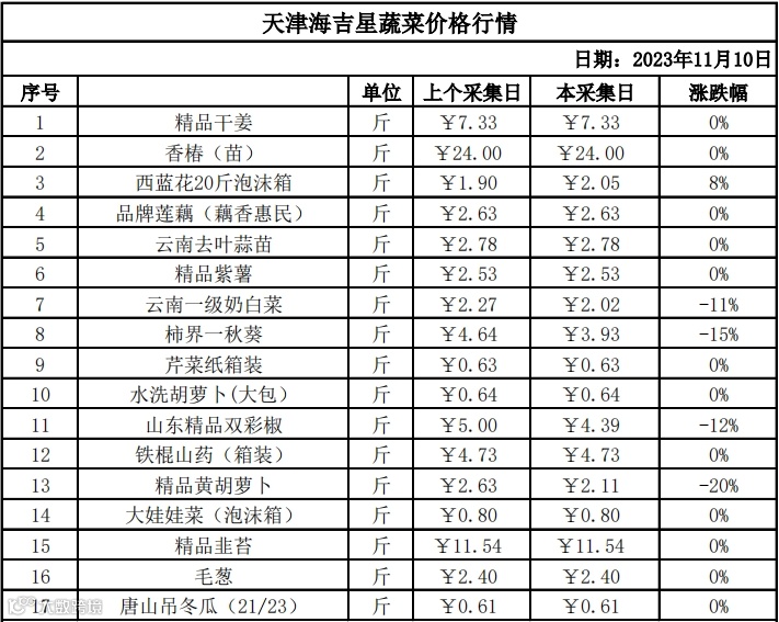 行情丨深农集团天津海吉星2023年11月10日价格行情