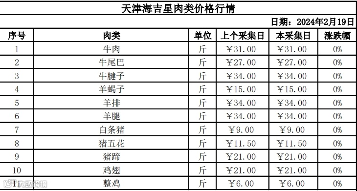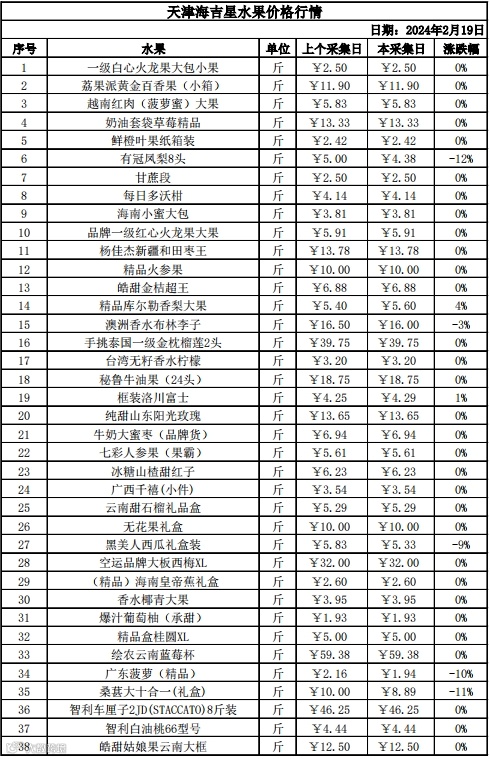 行情丨深农集团天津海吉星2024年2月19日价格行情