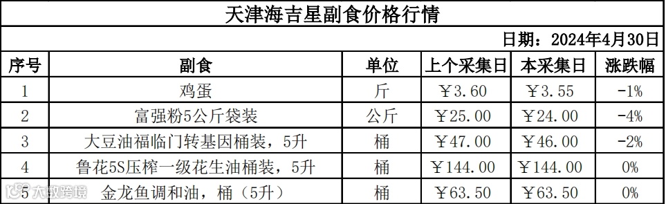 行情丨深农集团天津海吉星2024年4月30日价格行情