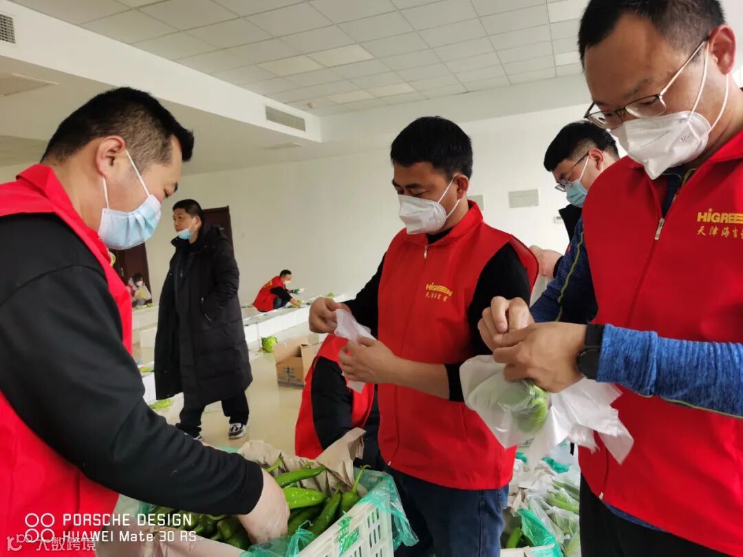 严寒挡不住天津海吉星人的热情,1月19日天津海吉星干部员工自发请战,利用换班休息时间,仅用了3个小时,精心选配了油菜、辣椒、茄子、花菜、小白菜等15种新鲜蔬菜和水果,快速完成了300箱套菜和300箱水果的采购、分拣、装箱、打包等工作,将满满的爱心送到抗疫一线人员家属手中。