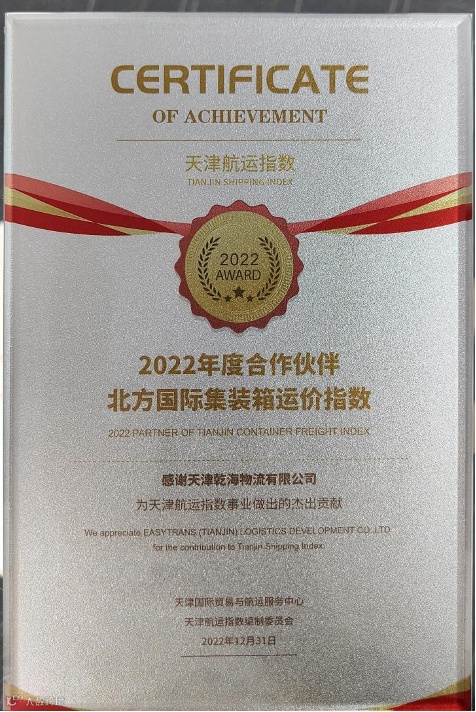 一直以来,天津乾海作为天津航运指数的指数提报单位,为天津航运指数的更新与编撰提供了行业内,详实、有力的数据支撑,今后也将继续为推动天津航运的进步贡献力量。