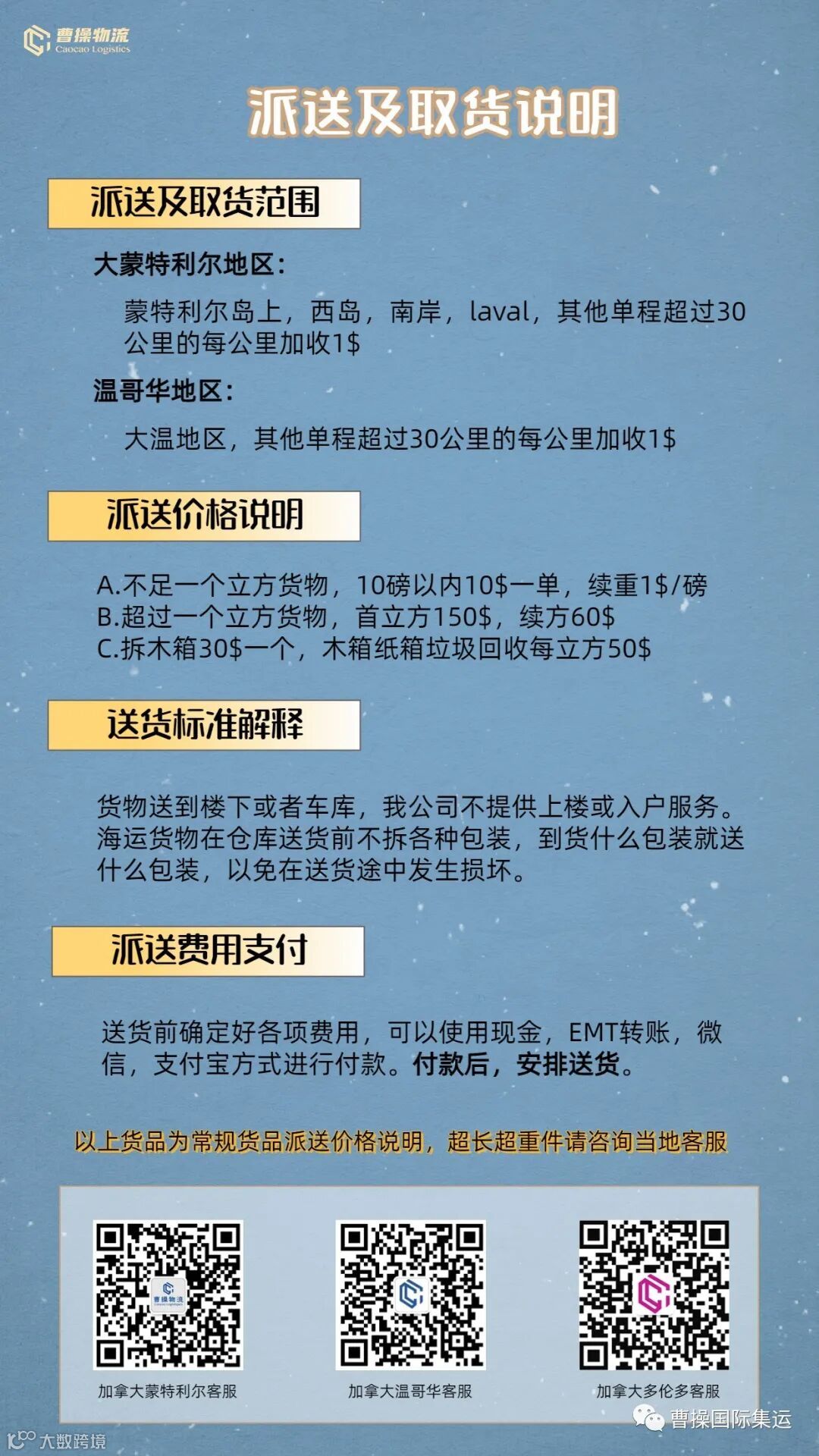 曹操物流集运是加拿大集运首选品牌,空运海运等多个渠道,国内仓库自营团队,国外多地自营团队,蒙特利尔、多伦多、温哥华等城市均有自营仓库,是集仓储,海淘集运,本地货运,亚马逊物流为一体的大型综合性物流企业。