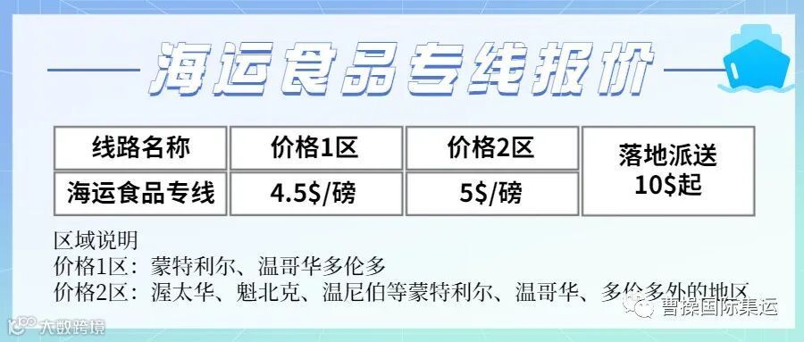 由于食品具有一定保质期,因此海运食品专线各地区暂不提供免费仓储服务,货到请尽快提取。
