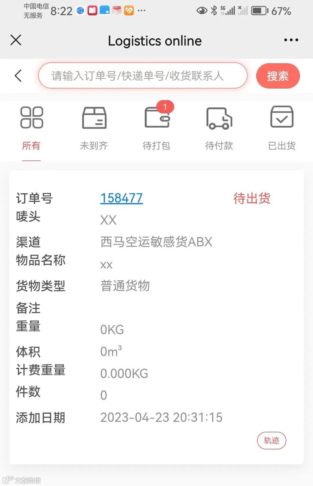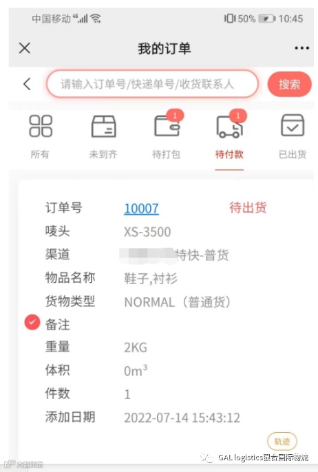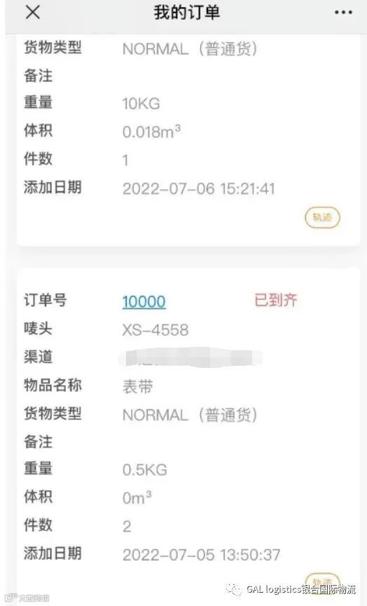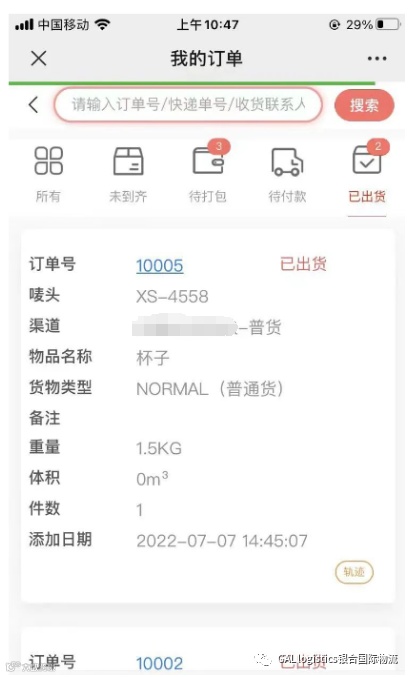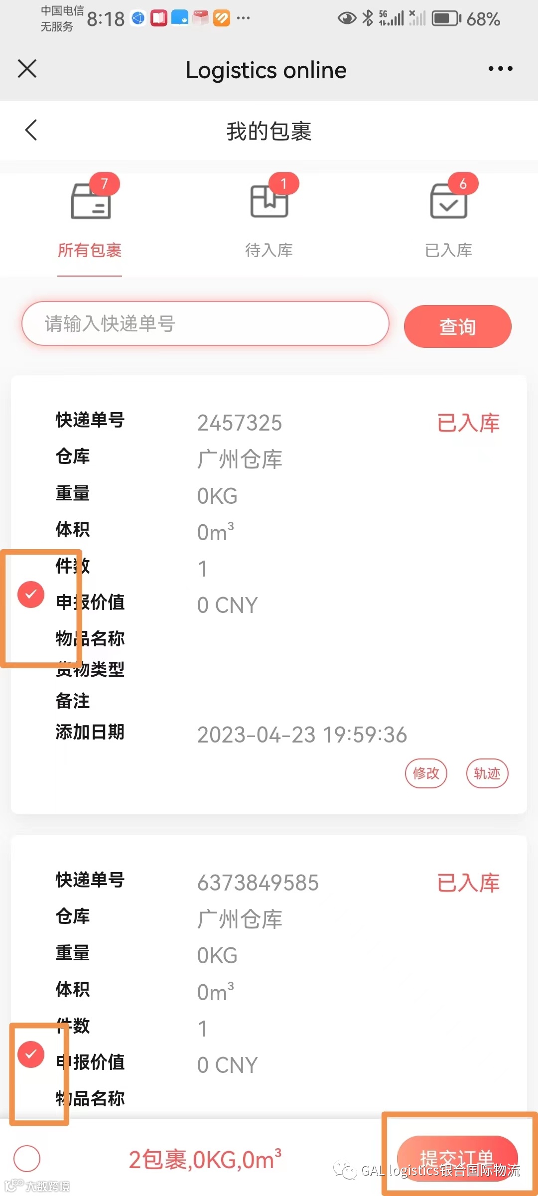 进入“我的包裹“页面,可以查看已录入所有包裹信息,