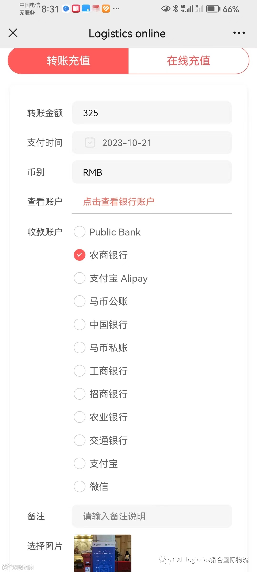 财务中心-账户充值,填写您的转账金额,并附付款截图,审核后,该订单就会成功出运。
