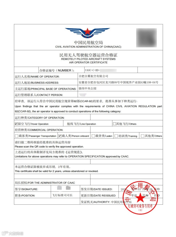 今年3月,合翼航空获得中国民航局颁发的载人类民用无人驾驶航空器运营合格证(OC)。这意味着中国低空经济“载人时代”序章正式开启,接下来合翼航空将基于合肥骆岗空中交通运营中心,在骆岗公园开展EH216-S航空器低空观光商业运营,致力于打造低空经济商业运营样板。