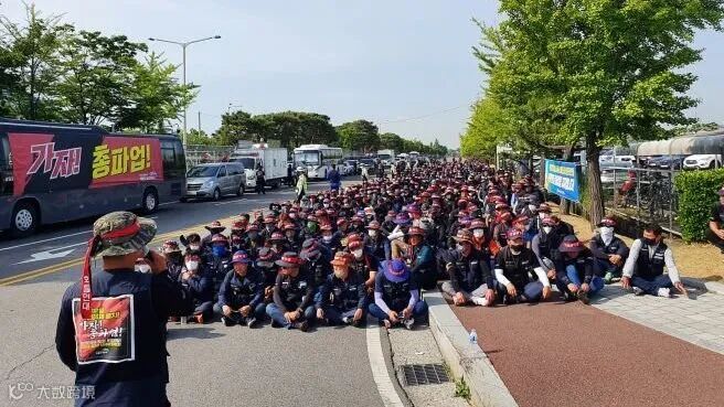 韩国拖车司机罢工“我们停下,世界就停下!”