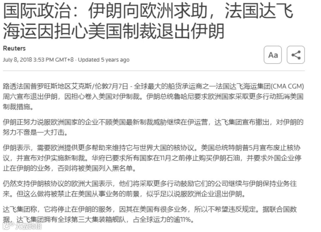 目前所有主流船东都不去伊朗了