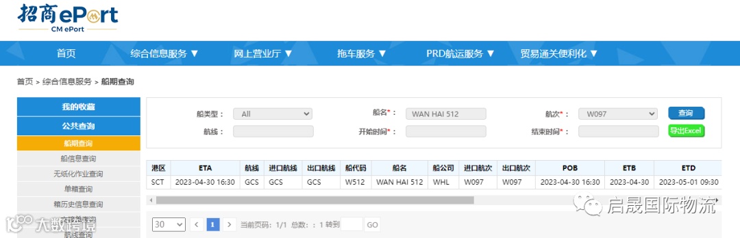 ②输入自己所要上的船期航次,确认后就会弹出相关信息。这里官方的ETA ETB 以及备注,是需要细心留意看的