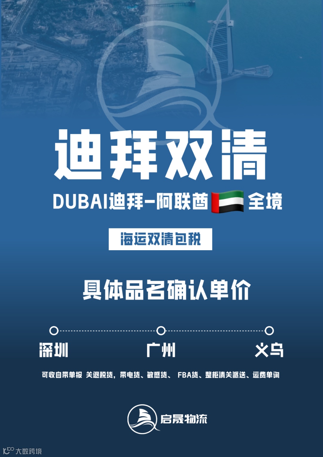 深圳市启晟国际货运代理有限公司是一家跨境电商物流公司,提供迪拜等新兴市场的物流服务重点,迪拜,深耕迪拜,在中国帮迪拜龙城、手机市场、配件市场、DEIRA、 Murshid bazaar(木须巴扎)、NAIF ROAD(南孚路)、BUR DUBAI等地方的客户生产了10年+的货,只做迪拜物流(阿联酋全境可派送)。