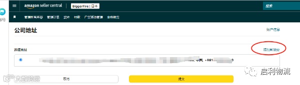 4.勾选新地址点击确认,并提交。等待亚马逊进行审核,审核通过后便可生效。