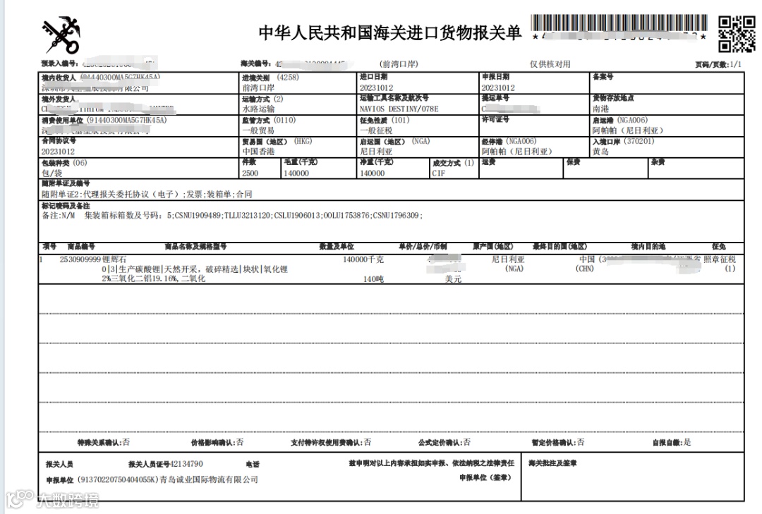 以上是关于“进口锂辉石报关流程_尼日利亚锂矿石清关资料”的内容,相信您能够更加轻松地搞定锂辉石进口业务。