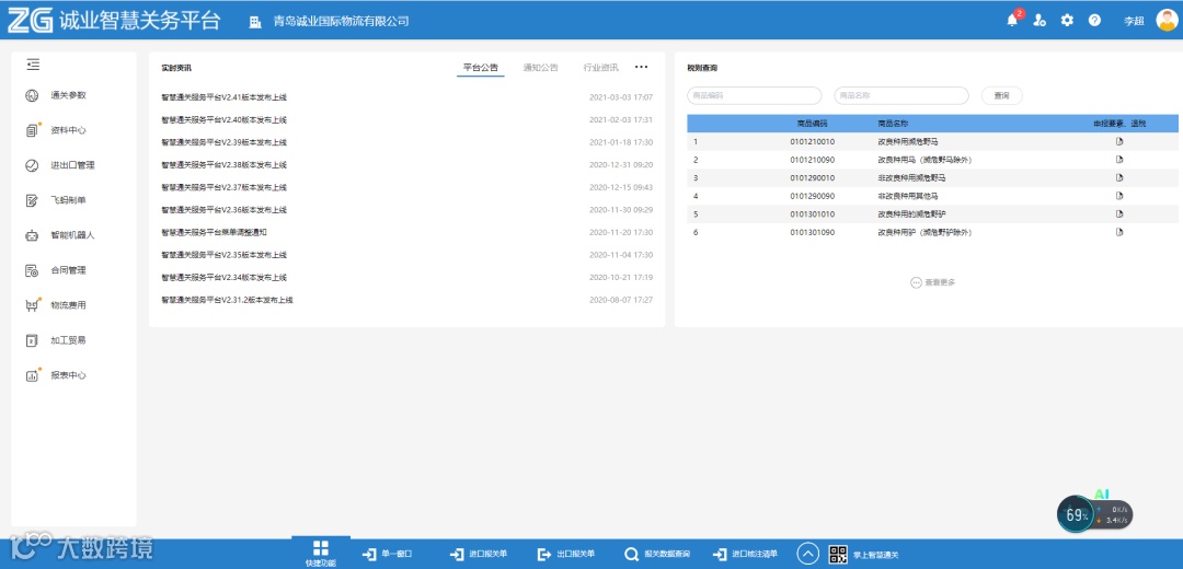 诚业智慧关务平台是由青岛诚业国际物流有限公司与LONGNOWS研发的一款基于“互联网+智慧外贸”新模式的智能通关服务平台。该平台上接贸易系统,下接物流信息平台,对接国家版国际贸易单一窗口。智能关务软件实现“互联网+智慧外贸”服务功能,线上结合线下准确服务中小贸易企业,降低通关操作成本,提升中小贸易企业自主报关能力,提高企业运作效率。