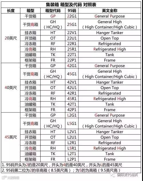 3)95码第一位数字为 2 的是20英尺,开头为 4 的是40英尺,开头为 L 的是45英尺。
