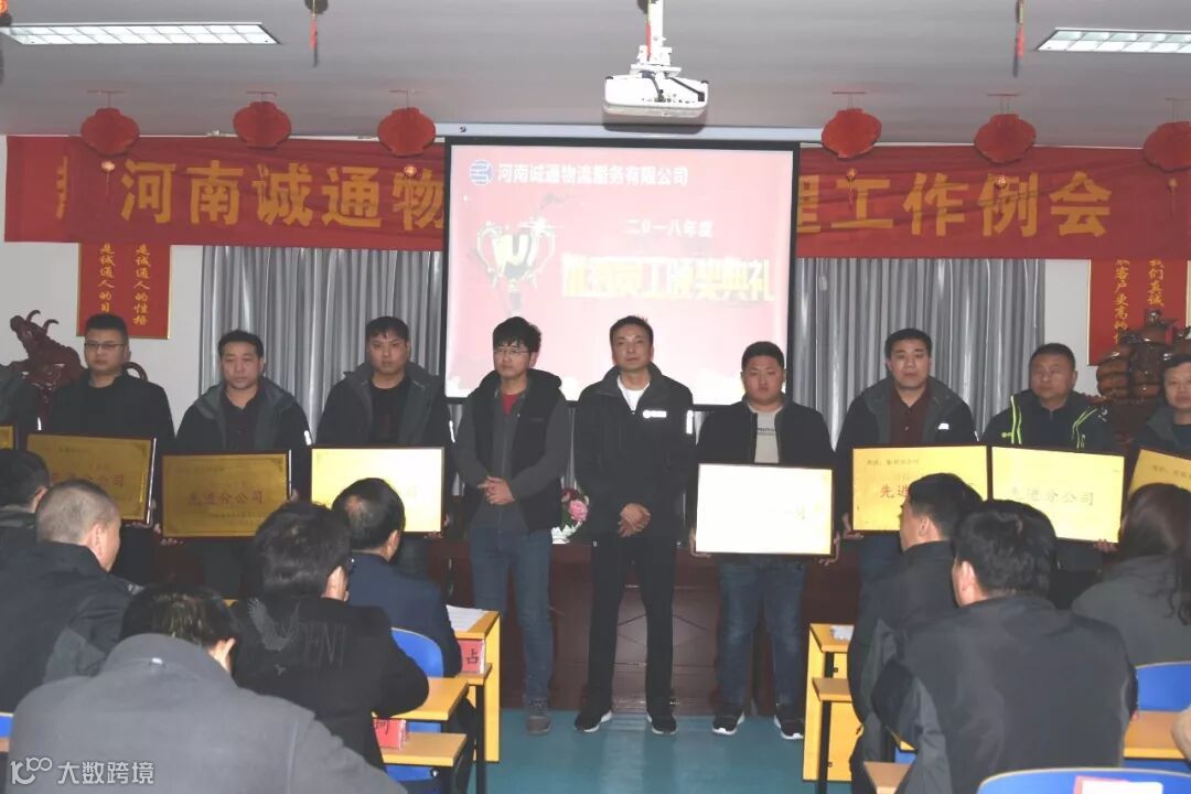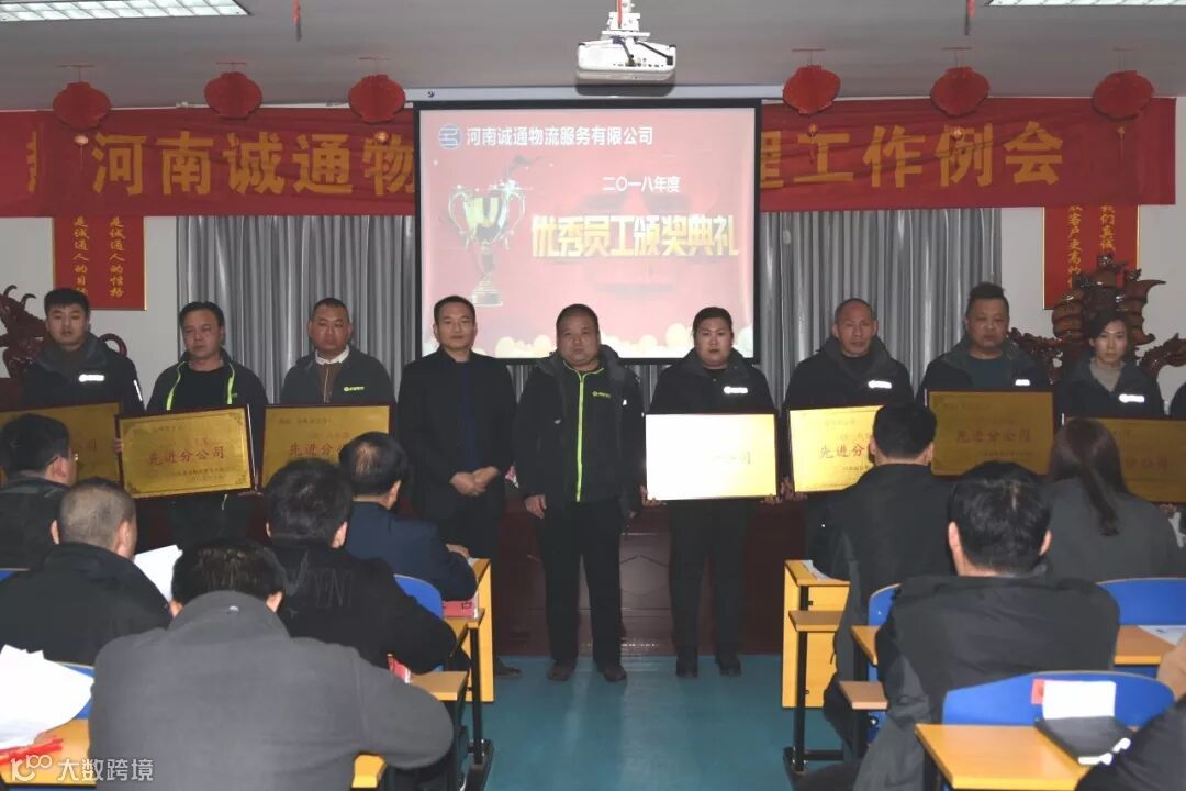 分公司区域经理黄国会、尚照芹为业务部、分拨中心先进集体,总公司先进部门颁奖