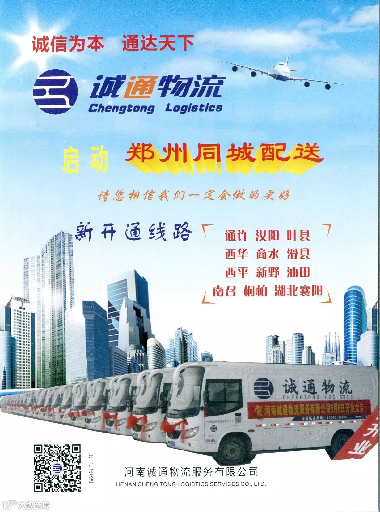 河南诚通物流服务有限公司集运输、仓储、物流配送和国际货代为一体的大型物流企业。公司秉承“诚信为本,通达天下”的经营理念。致力于现代物流业的标准化建设,营造稳健的物流发展新模式。欢迎您的合作、加盟。谢谢!
