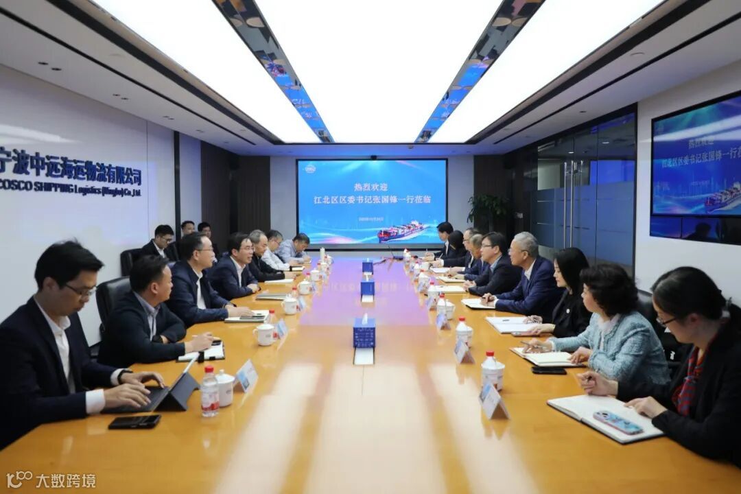 10月28日,江北区委书记张国锋莅临中远海运物流供应链(浙江)区域公司开展“大走访大调研大服务大解题”调研。浙江区域公司董事长、党委书记顾培林及领导层成员、相关部门负责人热情迎接并陪同调研。