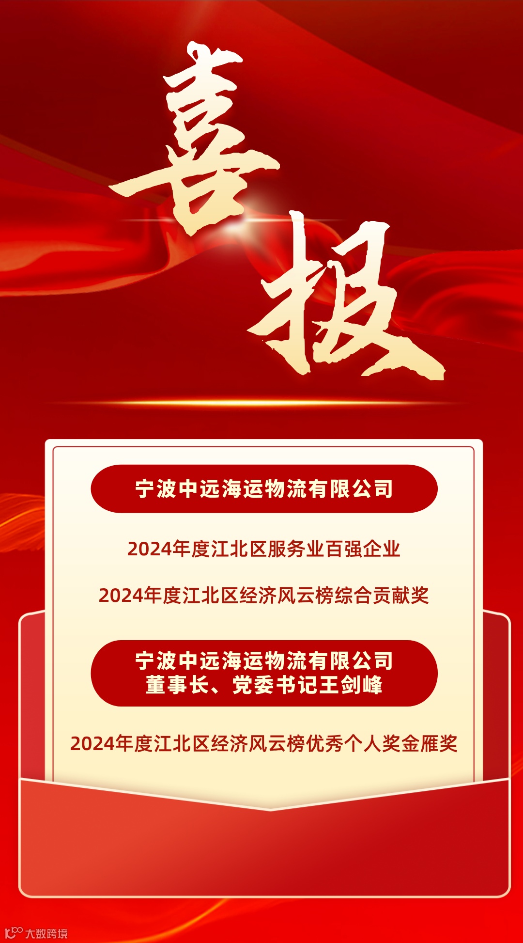 3月26日,宁波市江北区区委、区政府组织召开2024 年度江北区经济风云榜颁奖活动,宁波中远海运物流凭借稳健的经营业绩和良好的企业形象斩获多项大奖。