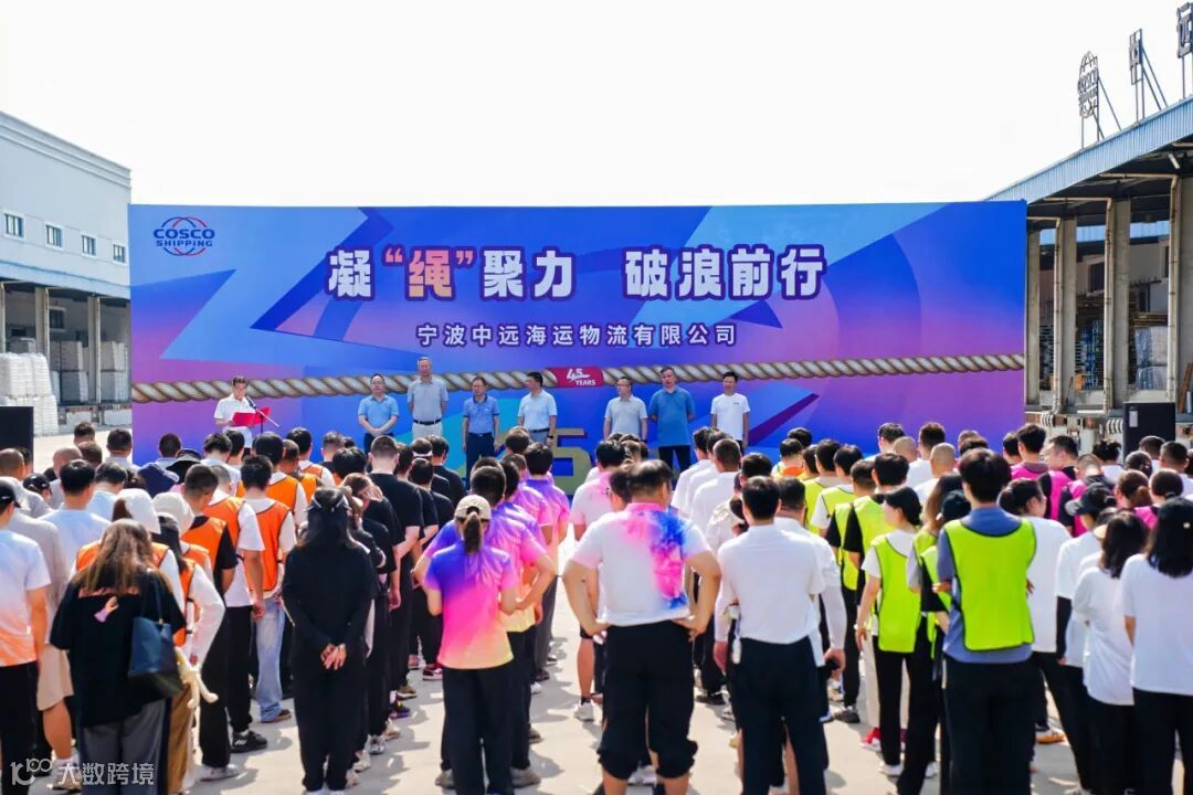 值此祖国75周年华诞、公司成立45周年之际,8月31日,宁波中远海运物流举办庆祝系列活动收官战——“凝'绳'聚力 破浪前行”拔河比赛。