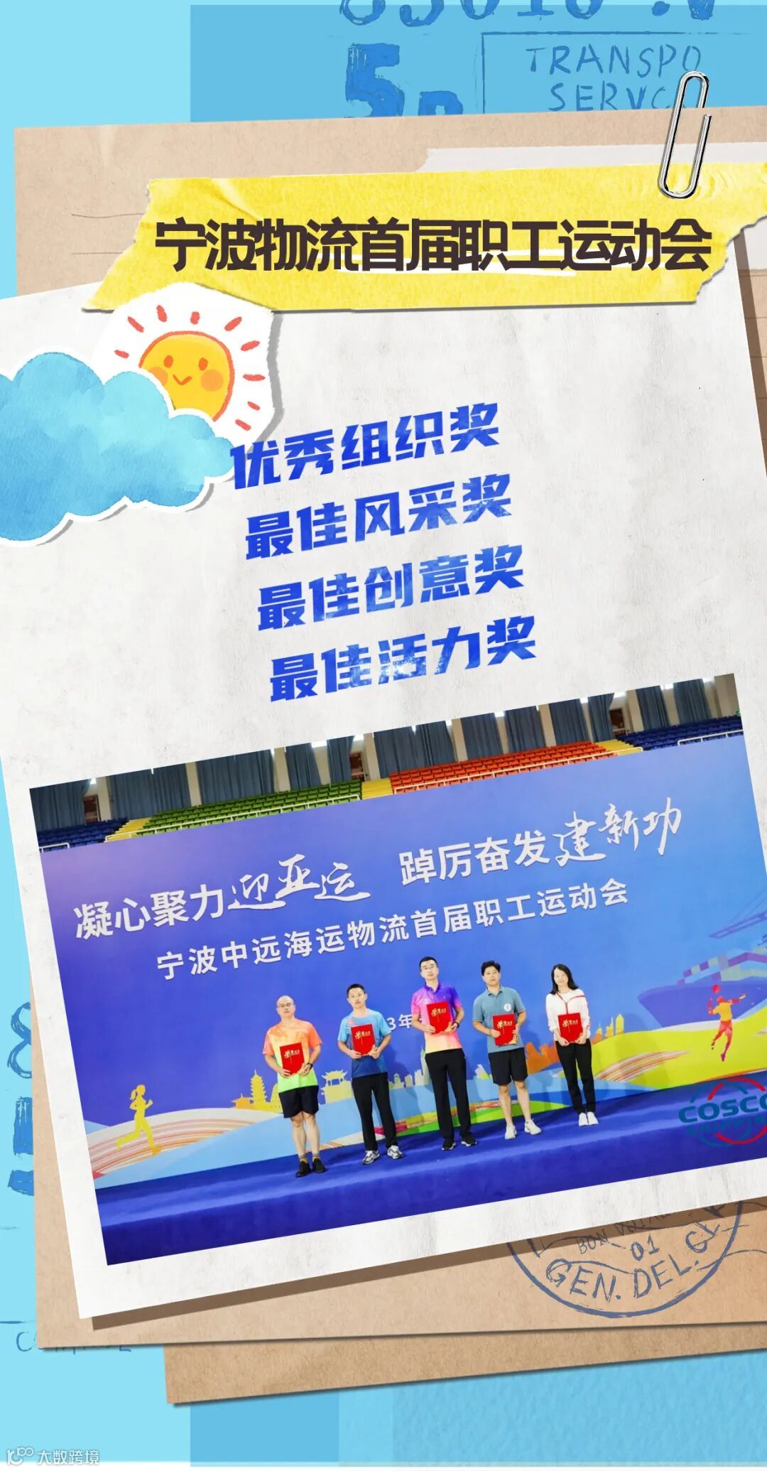 在刚刚结束的宁波中远海运物流首届职工运动会上,运动员们乘着亚运之风,发扬更高、更快、更强的奥运精神,迸发勇立潮头、拼搏奋进的运动活力,赛出竞技水平、赛出个性风采、赛出团结友谊,取得了多项傲人的成绩。