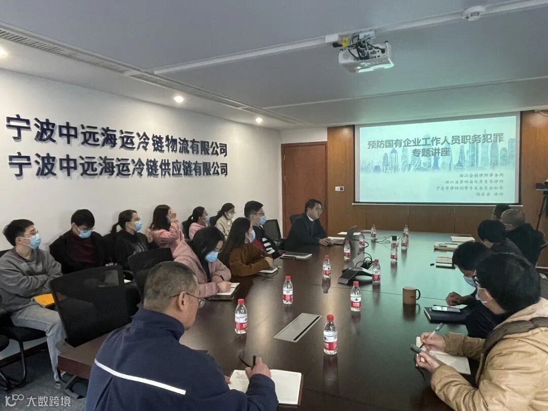 12月9日,冷链供应链党支部举办预防国有企业工作人员职务犯罪专题讲座,特邀浙江合创律师事务所、宁波市律协刑事专业委员会秘书陈东豪律师授课。本次讲座共有公司各部门党员、干部、关键岗位人员20多余人参加。