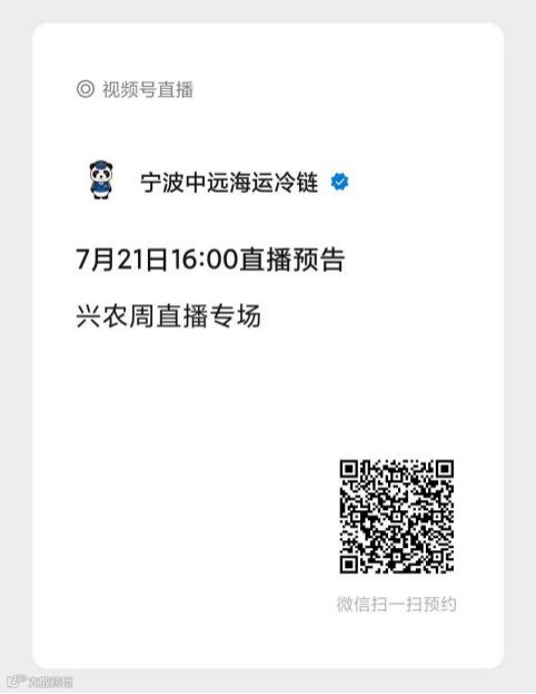 微信搜索视频“宁波中远海运冷链”,关注“宁波中远海运冷链”视频号,或微信扫一扫二维码,即可预约和分享。