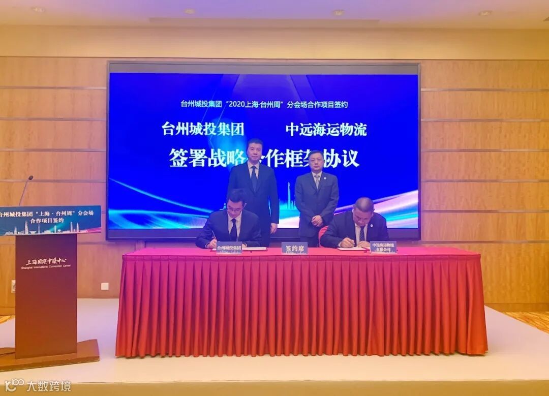 中远海运物流与台州城投集团在上海签署战略合作协议。中远海运物流总经理蒋恺,台州城投集团党委书记、董事长俞宏,台州城投集团副总经理杨颖等出席签约仪式。