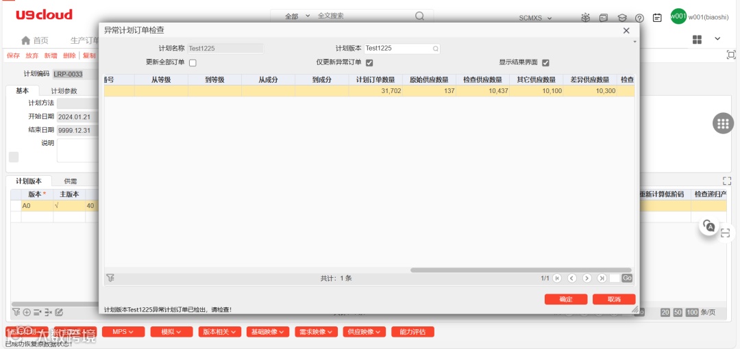 智能检查可以自动针对需求计划的结果进行检查,以识别在计划运算的过程中潜在的冲突,这使计划人员能够更快地了解计划的计算结果的是否存在异常情况,并采取相应的行动。