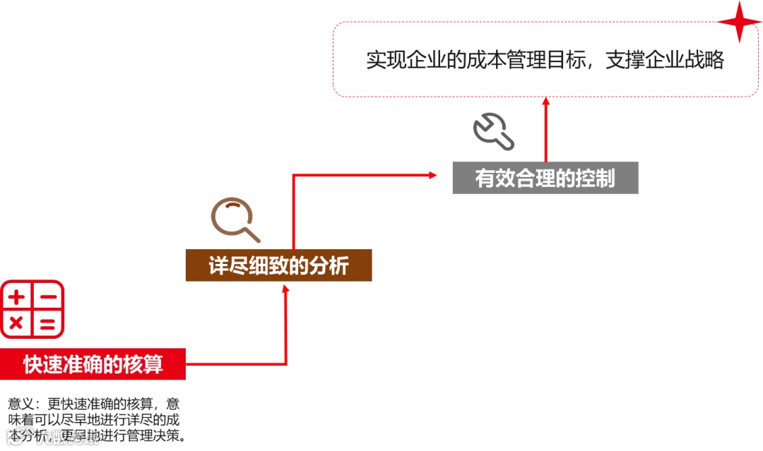 U9 cloud成本管理可以帮助企业构建适合自己的成本核算体系,实现从成本预测、成本数据自动归集、成本核算、报表统计,成本分析等全过程的管控和价值追踪,有效提高决策支持效能,进而实现更高效的运营和持续改善提升。