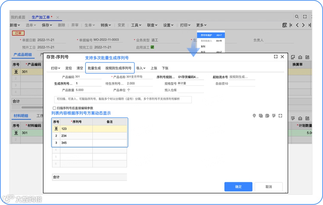 以上就是「生产序列号」功能的迭代,有需要体验的小伙伴抓紧去体验吧,体验过程中,有任何疑问,请文章底部留言,小编及时为您解答。