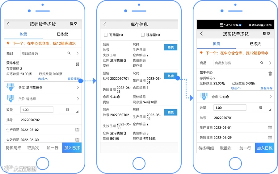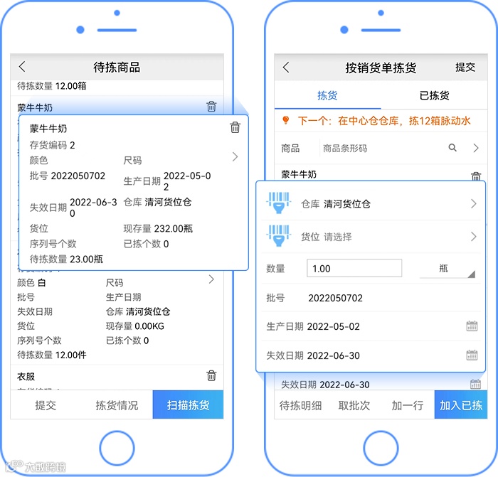 仓管员在按单据拣货时,通过扫条码快速带出商品,手工录入批号、自由项等其它信息,而这些信息在来源单上已经录入,希望能自动匹配带入,减少录入量提升效率。