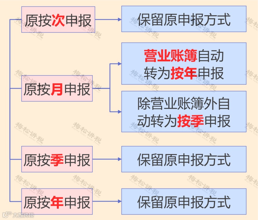 对于“按次申报”的纳税人来说,“按次申报”可能会遗漏忘记申报,因此,纳税人可以前往当地主管税务机关进行纳税期限变更,将“按次申报”调整为“按季申报”。当然啦,各地税务机关要求可能存在一定差别,具体需要小伙伴们咨询当地主管税务机关的最新政策哦!