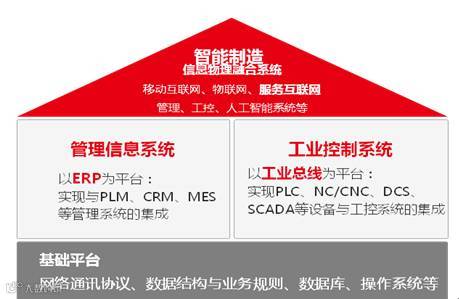 从智能制造大的体系来讲主要分为一个平台、两大系统,关键是这些系统之间相互沟通、相互集成。一是管理信息系统,主要是指以ERP为核心平台,来实现与设计PLM软件、客户连接的CRM软件、制造设备连接的MES系统进行相互集成。二是工业控制系统,它是指以工业总线为平台,实现与相关中控系统之间的集成。从工业控制的角度来说,中国制造业实现智能制造的难度很大,因为现在中国制造企业设备老旧、自动化程度落后。要想实现管理系统和工业控制系统之间的集成,难度更高了。