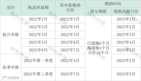(2)延缓缴纳2022年第一、二季度部分税费的,在延长6个月的基础上继续延长4个月,合计延长10个月