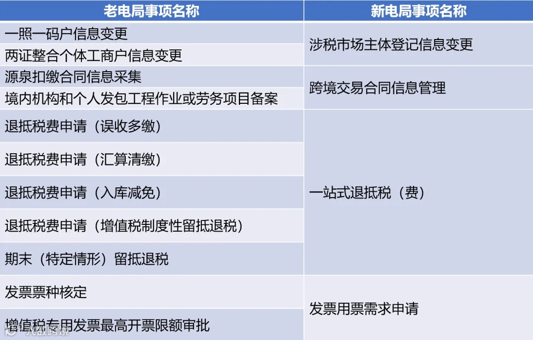 新电子税局部分事项名称相对于旧版电子税务局发生了变化: