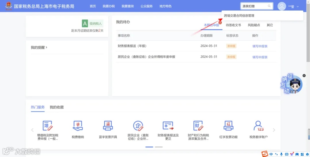纳税人进入新电子税局首页。