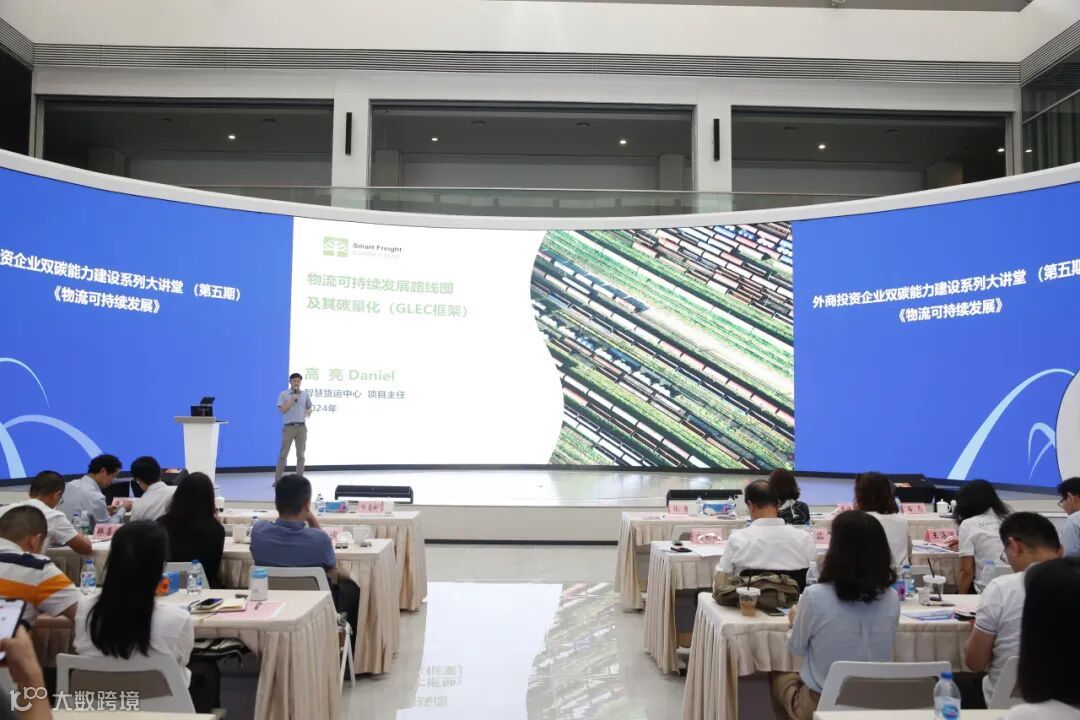 智慧货运中心项目主任高亮以《物流可持续发展路线图及其碳排放量化》为题进行了分享。在产业全球化和数字化的背景下,全球气候变化引发了政府、企业和机构对价值链(范围3)中物流运输温室气体排放的关注,他阐述了从基准线设定、目标设定、脱碳解决方案和绿色采购与合作的建议,对企业物流可持续发展实践起到启发和指引作用。