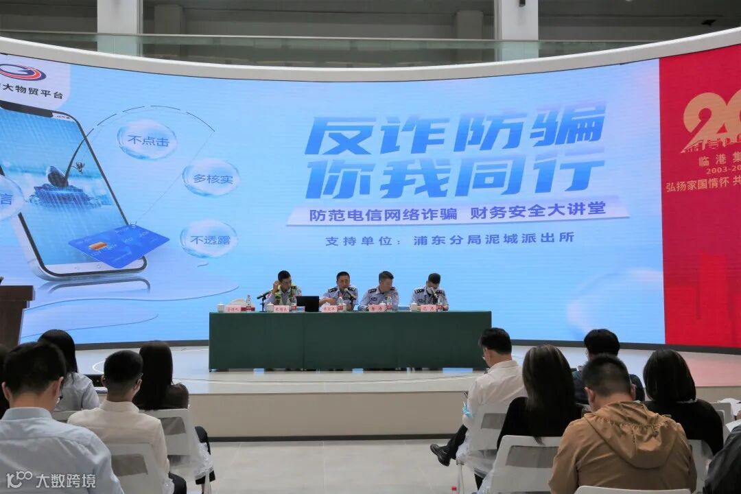 近日,临港大物贸平台在洋山国贸大厦举办了交通安全和反诈大讲堂。活动特邀上海市公安局浦东新区分局交通警察支队八大队、浦东分局泥城派出所为企业员工宣讲安全知识。