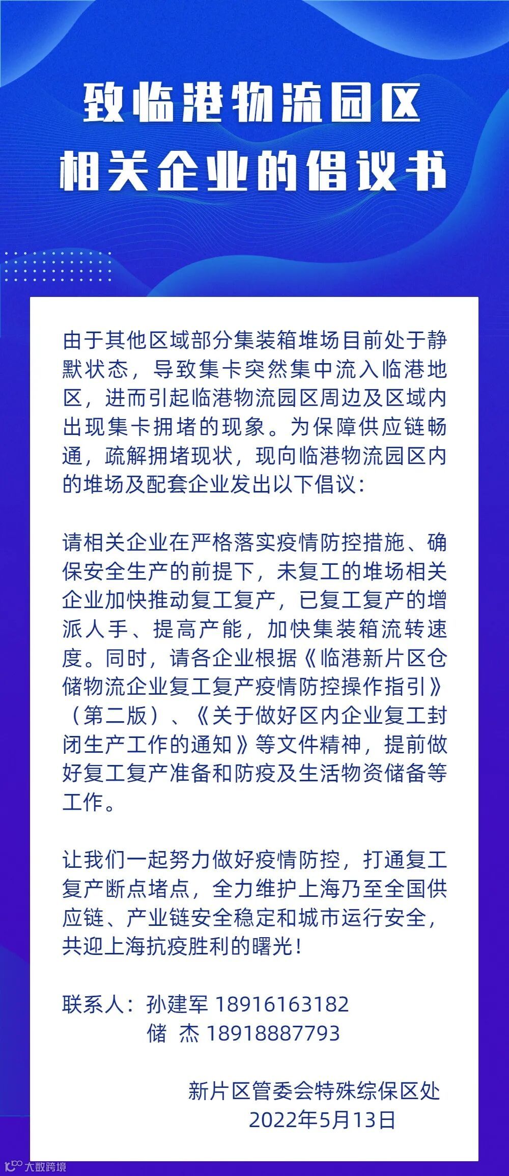 导读:让我们一起努力做好疫情防控,打通复工复产断点堵点,全力维护上海乃至全国供应链、产业链安全稳定和城市运行安全,共迎上海抗疫胜利的曙光!