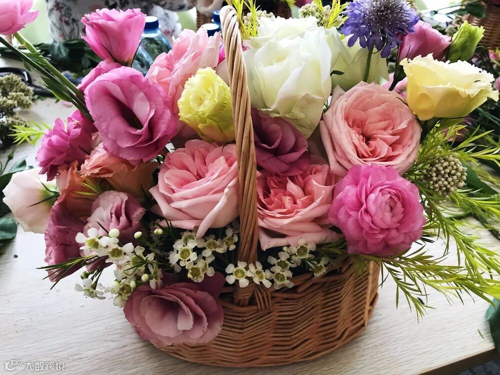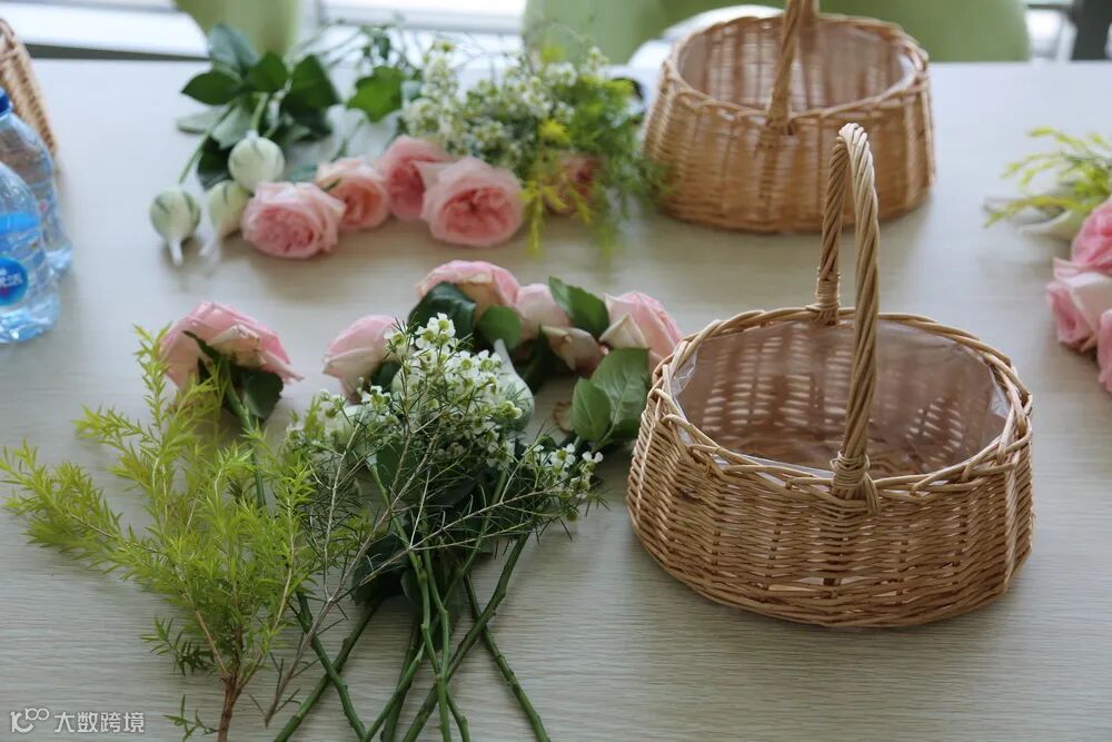 澳梅、荔枝、洋牡丹、格桑花……阵阵花香扑鼻而来,各式新鲜花材整齐地摆放在培训教室里。