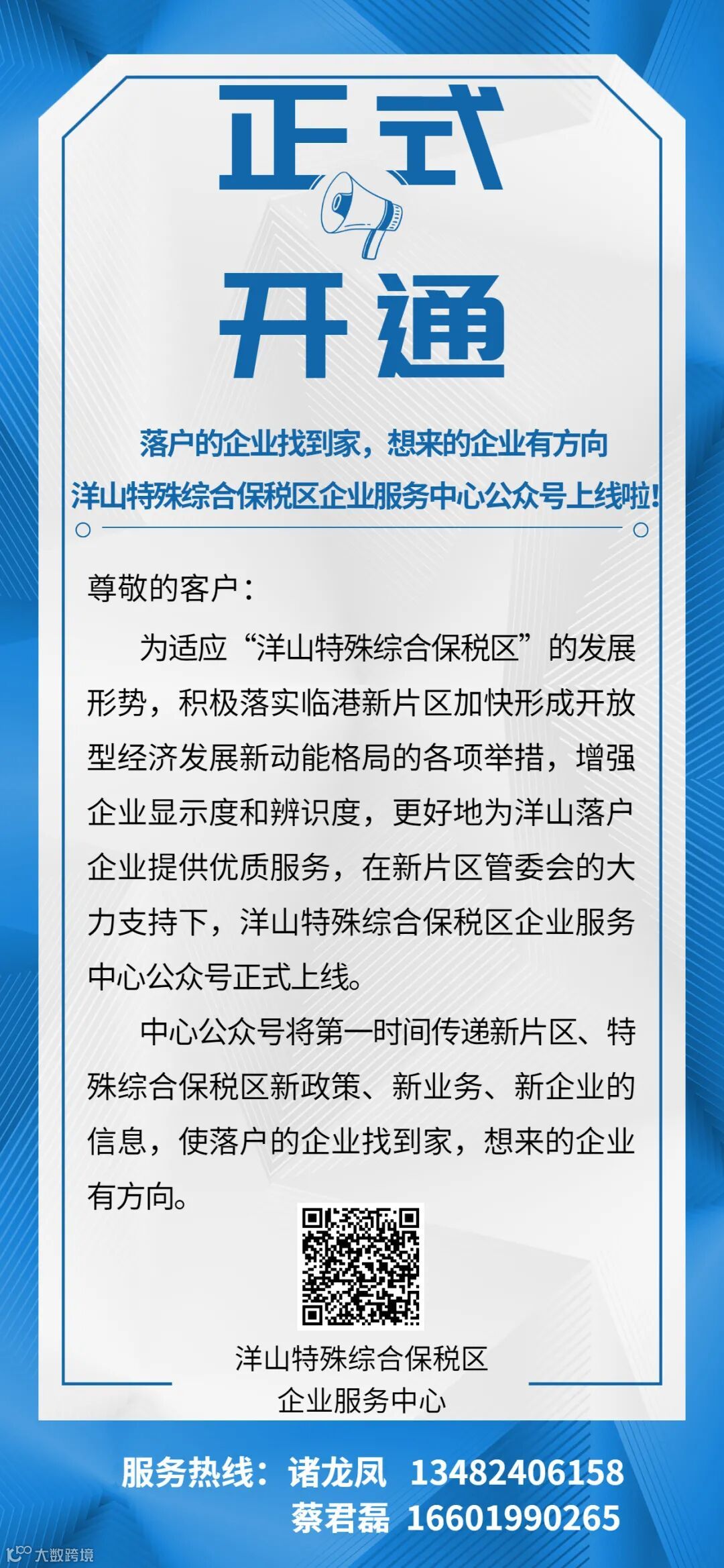 洋山特殊综合保税区企业服务中心公众号上线啦!