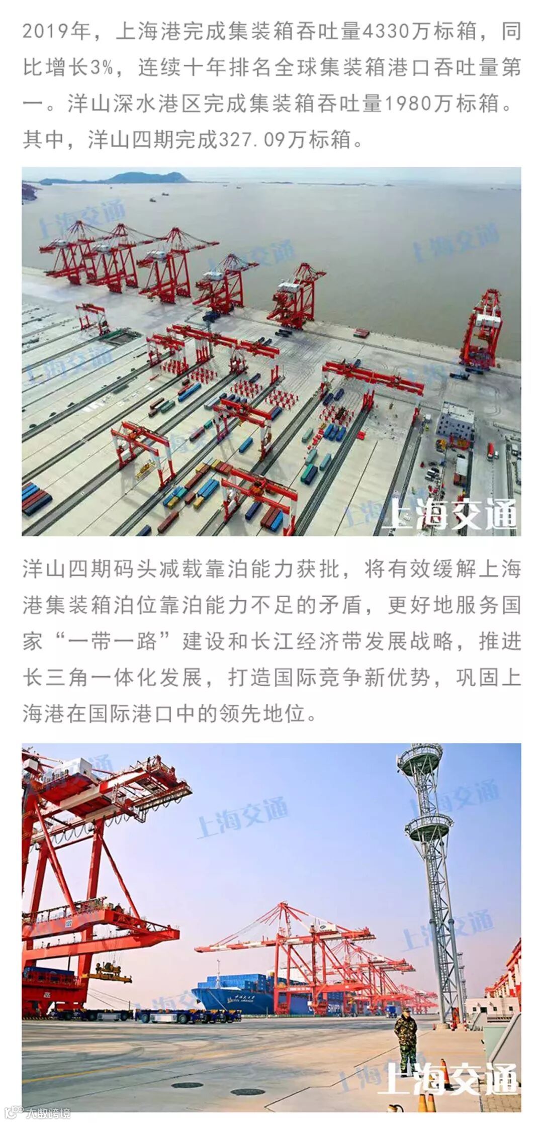 2月10日,上海国际航运中心洋山深水港区四期码头(以下简称“洋山四期”)2#-6#泊位减载靠泊能力获上海市交通委批复,标志着洋山四期可减载靠泊20万吨级集装箱船舶。这是交通运输部《沿海码头靠泊能力管理规定》实施后,上海首个按《规定》批复的集装箱码头。