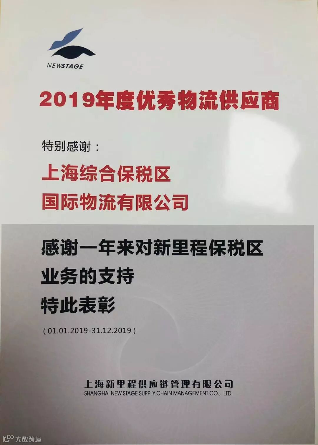 今年,上海综合保税区国际物流有限公司又一次荣获新里程颁发的“2019年度优秀物流供应商”这也是综保物流连续4年(2016-2019)获得此荣誉,也是该企业首家连续4年获此荣誉的供应商。”优秀物流供应商”称号是对综保物流供应链服务品质的高度认可,公司将继续以优质高效的服务为客户做好服务,致力于成为更多客户选择和信赖的物流合作伙伴。