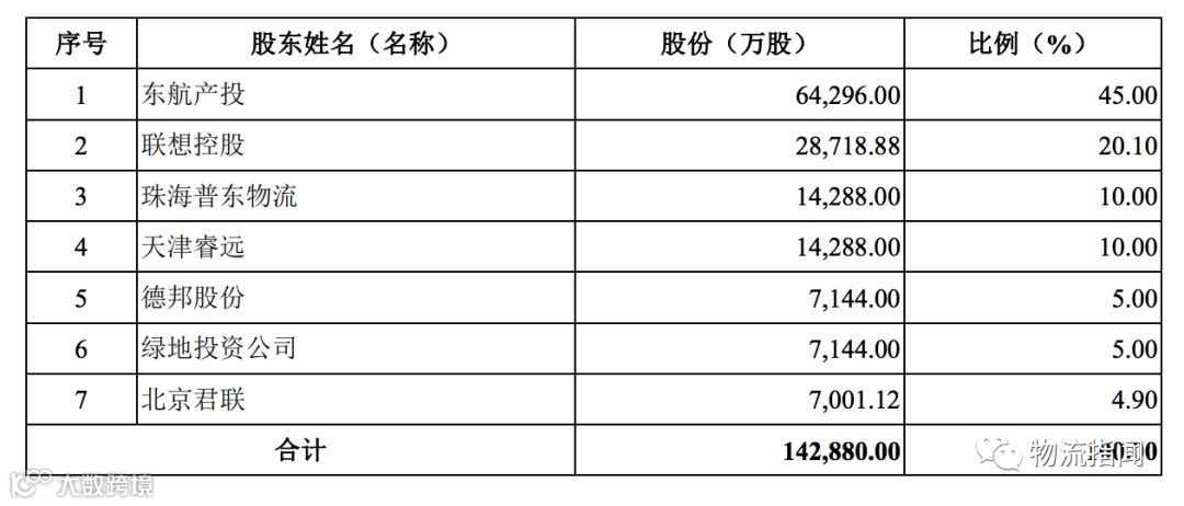 2017年6月,东航物流作为国家推动的央企混改首批试点之一,也是发改委关于民航领域混改试点的首家落地企业,率先完成股权多元化,引入非国有投资者及核心员工持股,包括联想控股、珠海普东物流、德邦股份、绿地投资公司、天津睿远。之后,联想控股将其所持的4.9%股权转让给了北京君联。