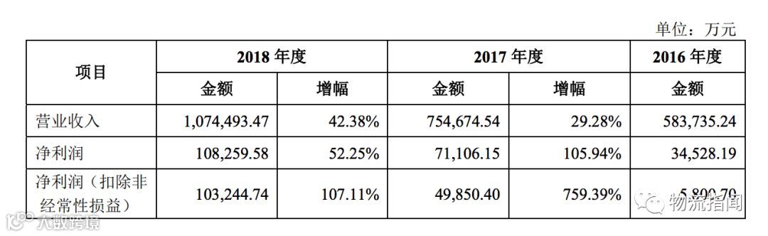 根据招股书显示,中货航2016年度、2017年度、2018年度主营业务收入分别为3.8亿元、4.8亿元、7.8亿元,净利润分别8896万元、2.3亿元、5.4亿元。另外,东唯航空为为中货航下属子公司,中货航和深圳市唯佳全球快运有限公司分别持股65%和35%。东唯航空主要从事国际货代业务。
