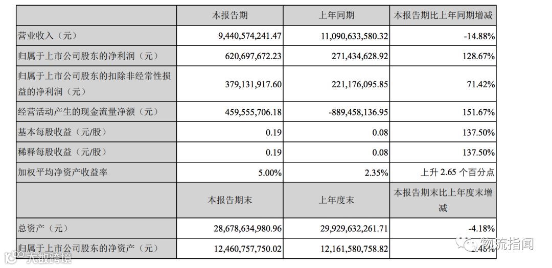 8月26日晚,传化智联披露2019年上半年业绩报告。上半年公司实现营业收入94.41亿元;营业利润8.87亿元,同比增长83.50%;归母净利润6.21亿元,同比增长128.67%;净资产收益率5.00%,同比上升2.65个百分点。另外,值得注意的是,上半年传化智联经营性现金流由去年同期的负8.89亿元大幅逆转为本期的4.60亿元。