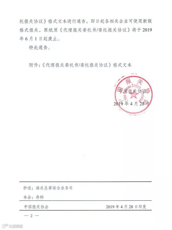 各位货主、货代注意了!报关委托书有新版本了!近日,中国报关协会发布通告,通告称海关总署同意,发布新版《代理报关委托书/委托报关协议》,新版报关委托书即日起可使用。旧版《代理报关委托书/委托报关协议》将于今年6月1日起废止。小编在此提醒各位外贸企业的朋友,请注意6月1日后要使用新版报关委托书了!各位货代小伙伴们,也请及时提醒你的客户,特别是6月1日后,旧版委托书废止,必须使用新版报关委托书!请大家避免因为报关委托书版本的问题,导致因随附单证有问题,耽误您的报关乃至货物进出口,造成不必要的麻烦和损失!