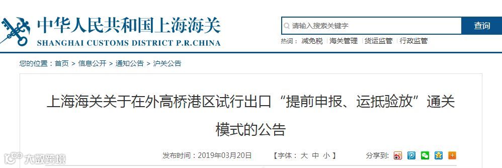 3月20日,上海海关已发布2019年第1号公告,外高桥港也开始试行出口“提前申报”。具体公告见文末。