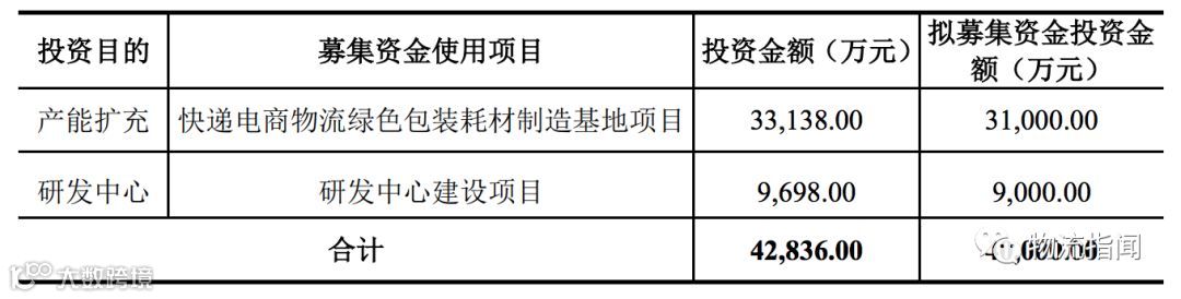 相关文件显示,天元实业公开发行的股票均为公司公开发行的新股,无公司股东公开发售的股份。本次公开发行股票数量不超过4,420 万股,不低于发行后公司总股本比例的25.00%。此次发行,其计划募集资金4亿元,扣除发行费用后用于快递电商物流绿色包装耗材制造基地和研发中心建设两大项目。
