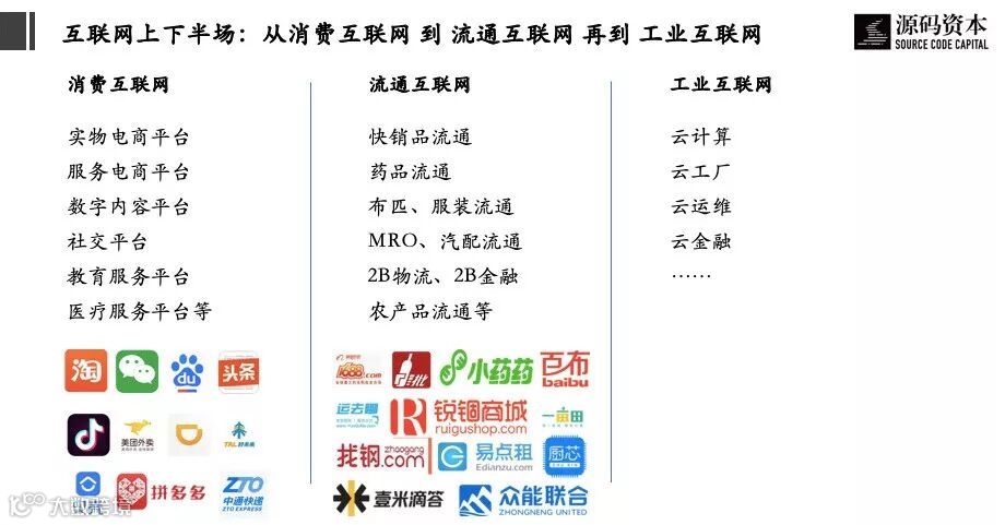 可以举个例子:百布,我们投资的一家公司在布料行业的产业互联网企业,他们正在实现依托流通互联网的优势地位推动工业互联网建设。五年前我们天使投资了这家公司,致力于帮助服装厂和纺织厂之间的布料流通电商化,从当年只有百万级别的GMV快速增长到今年的百亿级,成为布料流通最大的电商渠道,还在快速增长。